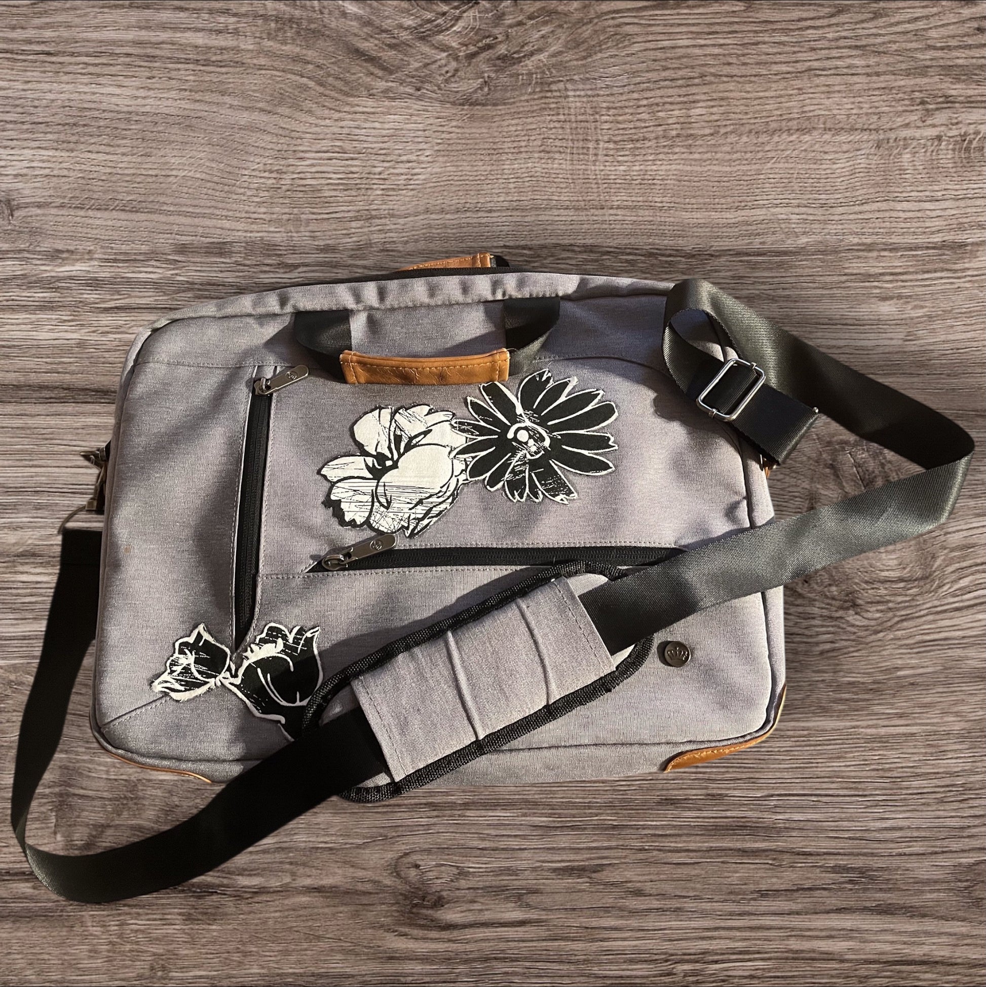 Upcycled Floral Embellished Computer Messenger Bag with Carry Strap and Pockets