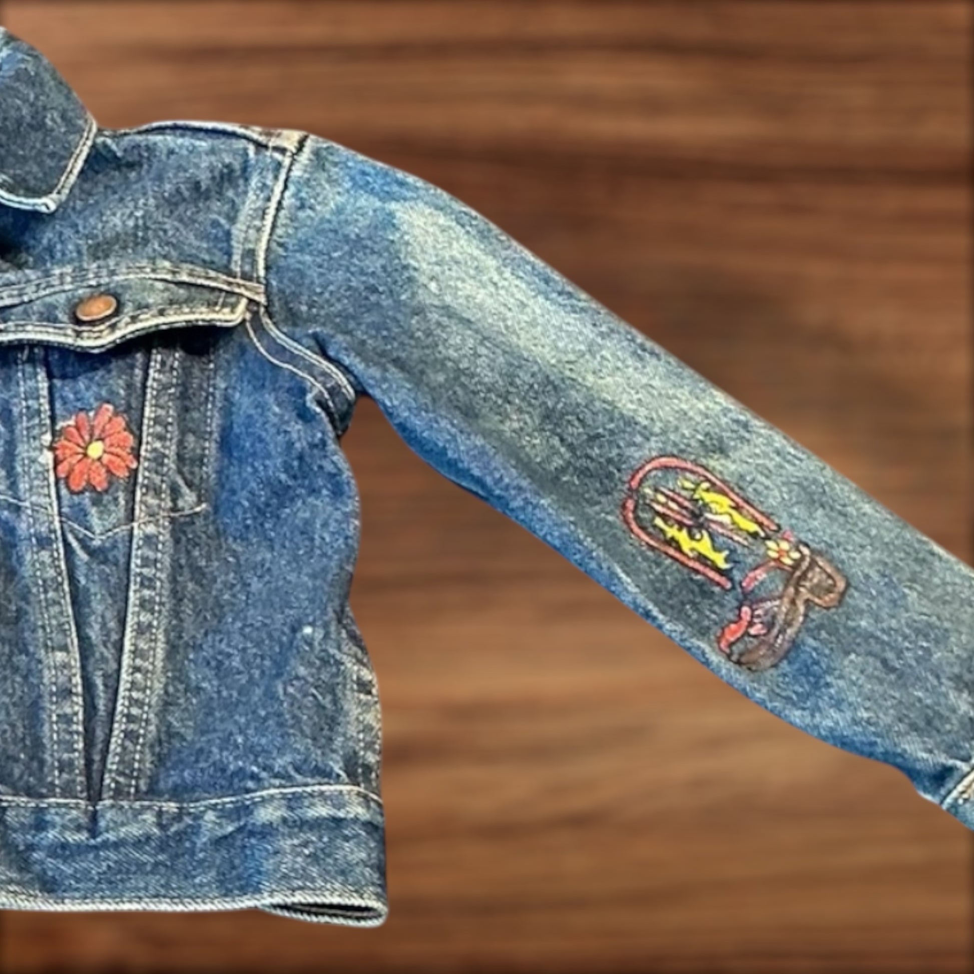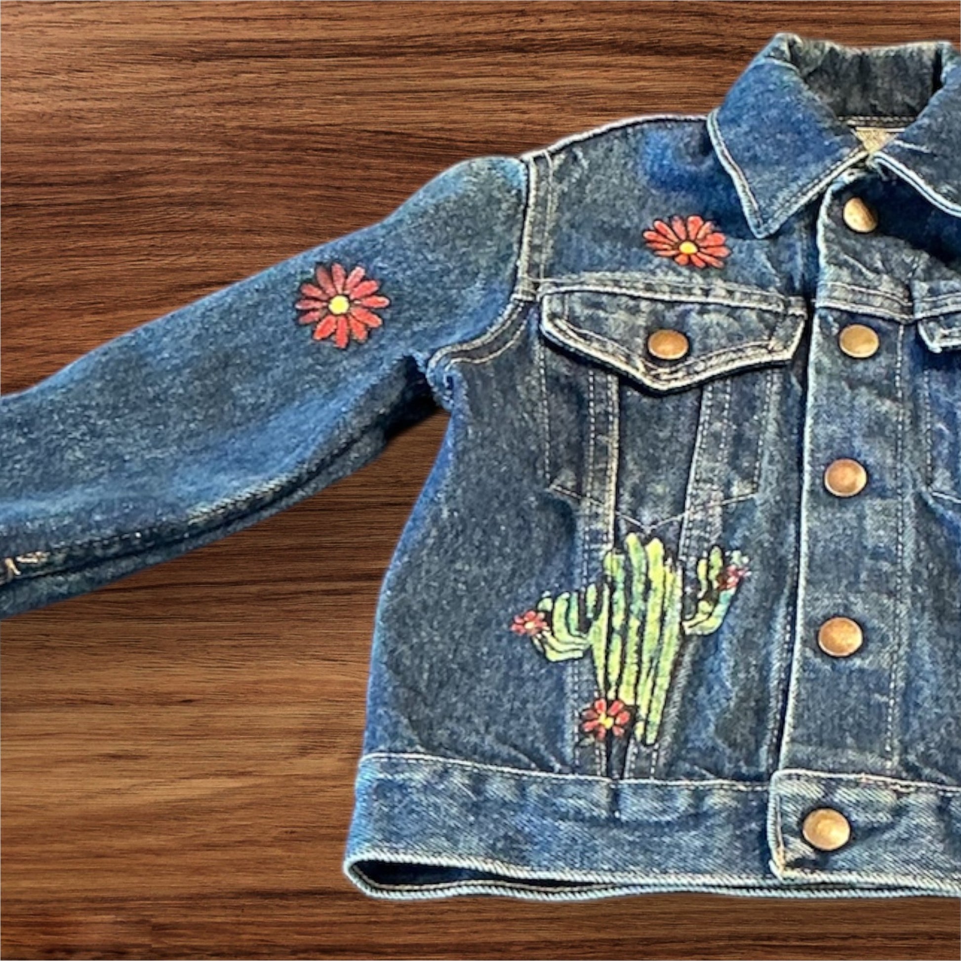Upcycled Kids Denim Jacket with Hand Painted Western Motifs