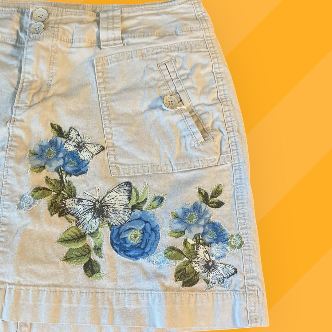 Women’s Size 6 Skirt/Shorts with Appliquéd Butterfly and Rose Embellishment